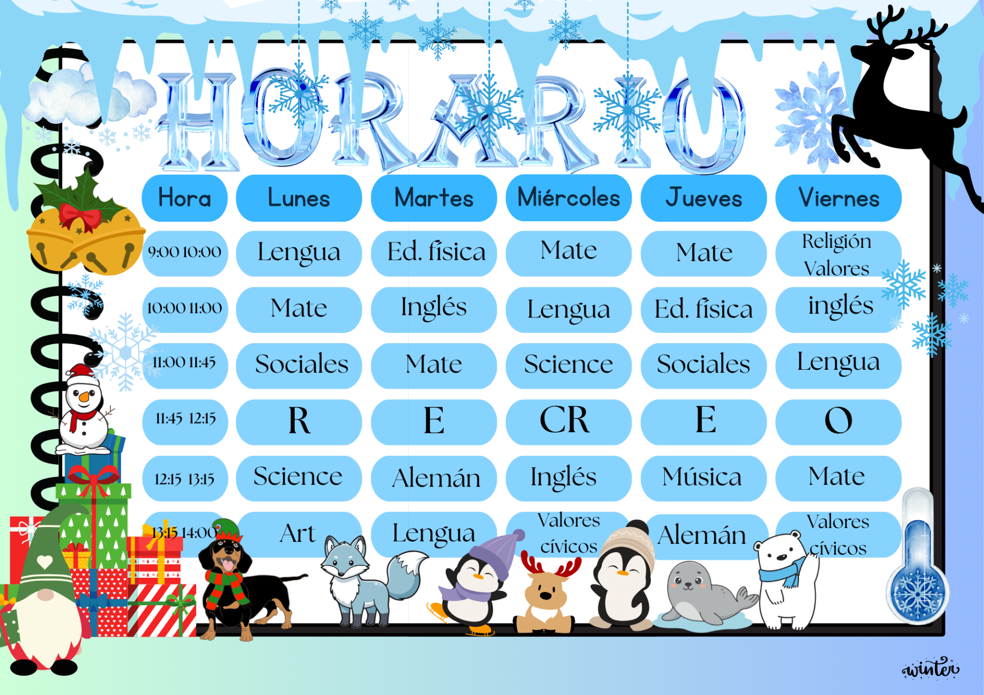 Horario escolar doodle divertido colores arcoíris