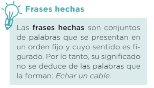 Las frases hechas son expresiones fijas con un significado especial.