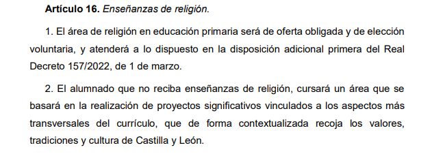 DECRETO 38/2022 DE 29 DE SEPTIEMBRE, que regula el currículo de Educación Primaria en Castilla y León, la materia de Atención Educativa (como alternativa a la Religión) se menciona únicamente en el siguiente artículo: